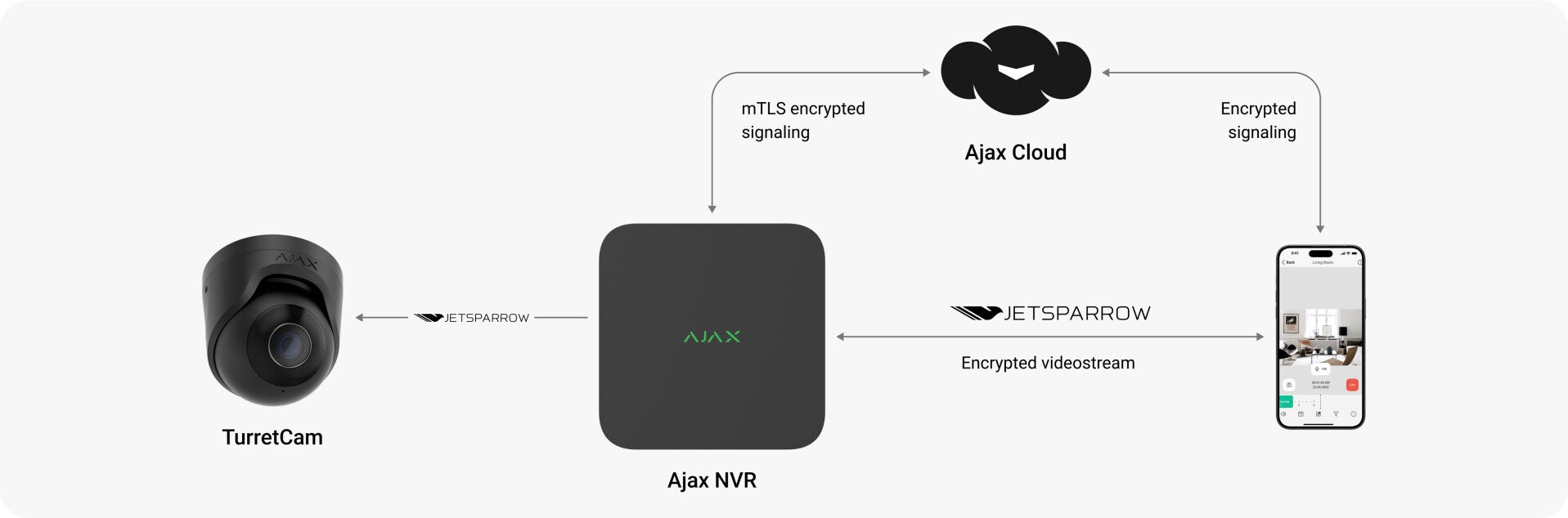 Die 8-MP Ajax TurretCam arbeitet nahtlos mit der Ajax Cloud für Systemereignisse; die proprietäre JetSparrow-Technologie sorgt parallel für eine schnelle Peer-to-Peer-Übertragung der Videodaten. KI-Analysefunktionen erkennen und unterscheiden Menschen, Fahrzeuge und Haustiere. So werden nur relevante Ereignisse gespeichert – das schont Speicher und erleichtert die Auswertung. Auf Wunsch lassen sich Kameras nur dann aktivieren, wenn das System scharf ist.